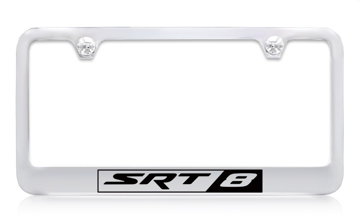 Chrysler SRT 8 Chrome Plated Solid Brass License Plate Frame Holder With Black Imprint