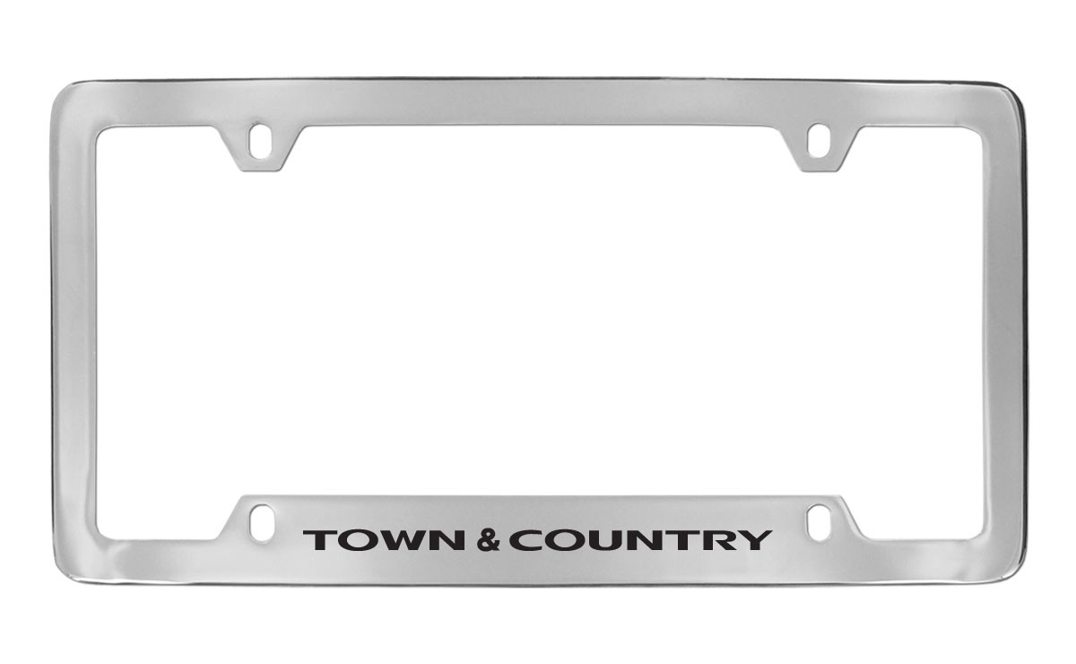 Chrysler Town & Country Chrome Plated Solid Brass Bottom Engraved License Plate Frame Holder With Black Imprint