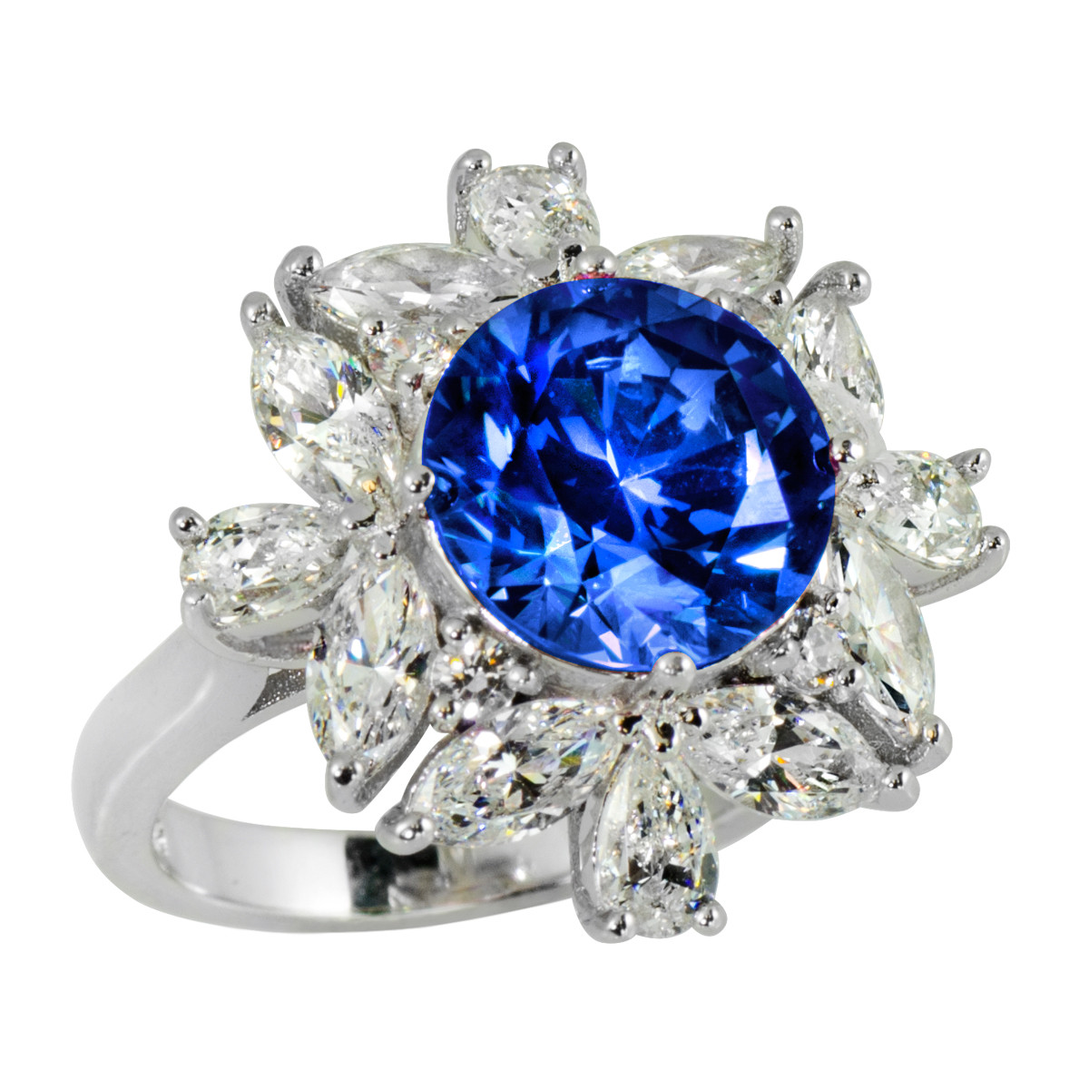 Ring(Size 6, 7, 8) Made With Dazzling Crystals Round 1 Fancy Blue ( 10mm ) + White [8 (6X3mm #32117)+ 4 (5X3mm #32595) + 4 ( 2mm # 28300)]